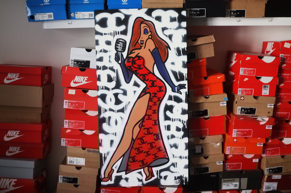 1 Meter by 0.5 meter box canvas, hand painted and sprayed.